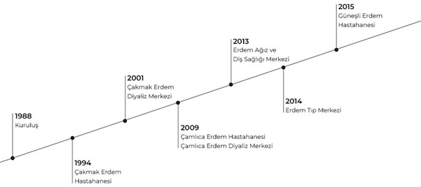 Erdem Grubu, 1988’den beri sağlık ve eğitim sektöründe hizmetlerini başarı ile sunmaya devam etmektedir. Sağlık alanında hasta memnuniyetine önem veren, hizmette sınır tanımayan ve hasta haklarına saygılı bir anlayışla sunduğu hizmetleri halkla buluşturan Erdem Grubu’nun üç hastahanesi, iki diyaliz merkezi, tıp merkezi ile ağız ve diş sağlığı merkezi bulunmaktadır. Sağlık sektöründe hızla yükselen ve gelişen Erdem Grubu, 2011 yılında eğitim sektörüne giriş yaparak bu alanda deneyimli eğitim kadrosuna sahip anaokulu, ilkokul, ortaokulu, anadolu lisesi, anadolu sağlık meslek lisesi ve yazılım lisesi ile faaliyet göstermektedir.