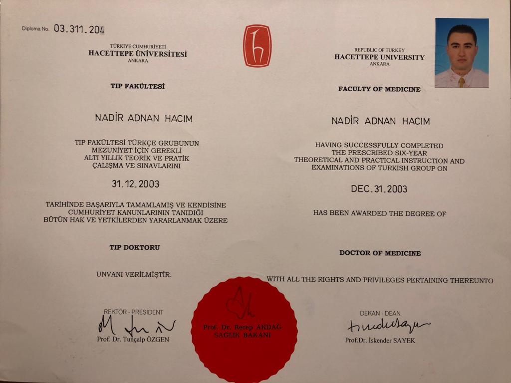 • Üniversite: Hacettepe Üniversitesi Tıp Fakültesi – ANKARA