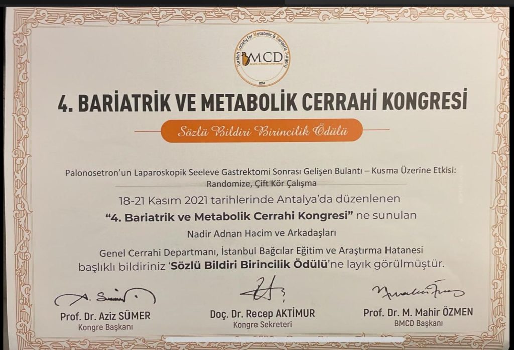 Serhat Meric, Nadir Adnan Hacım; Bağcılar Eğitim ve Araştırma Hastanesi
