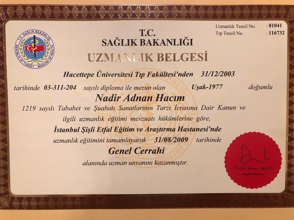 • Uzmanlık Eğitimi: Şişli Etfal Eğitim ve Araştırma Hastanesi, Genel Cerrahi Kliniği – İSTANBUL